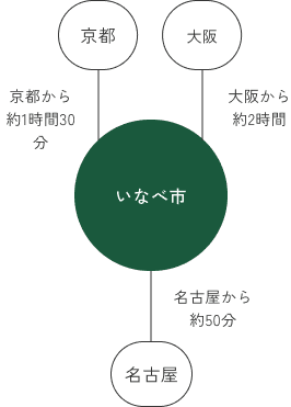名古屋から:東名阪自動車道/東海環状自動車道(約50分)