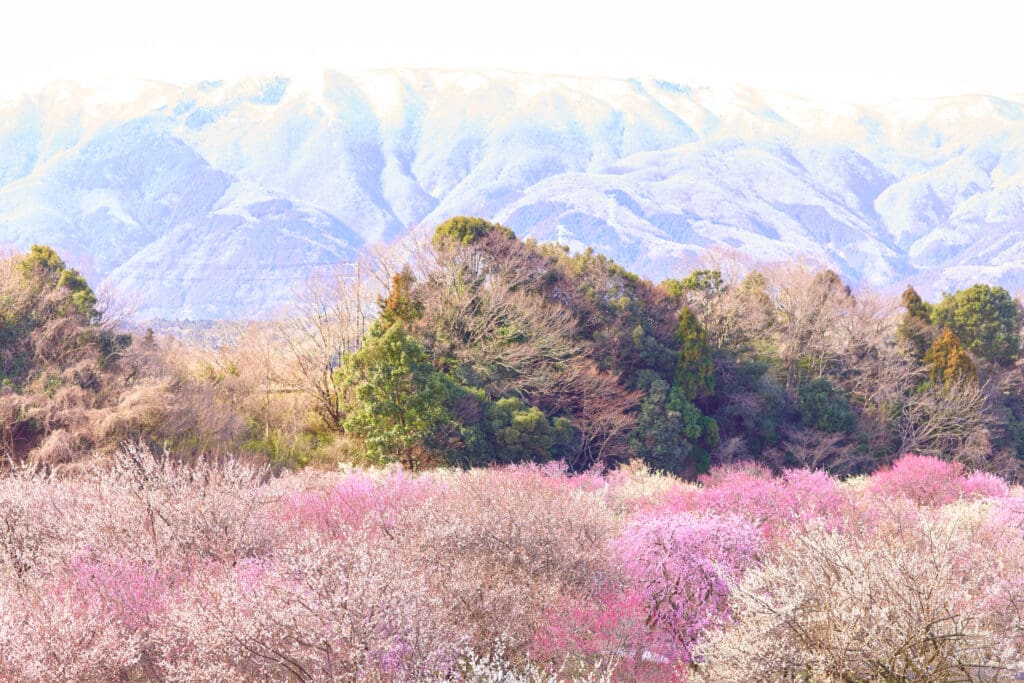 眼下一面に広がる梅の花。先人手作りのいなべ市「梅林公園」