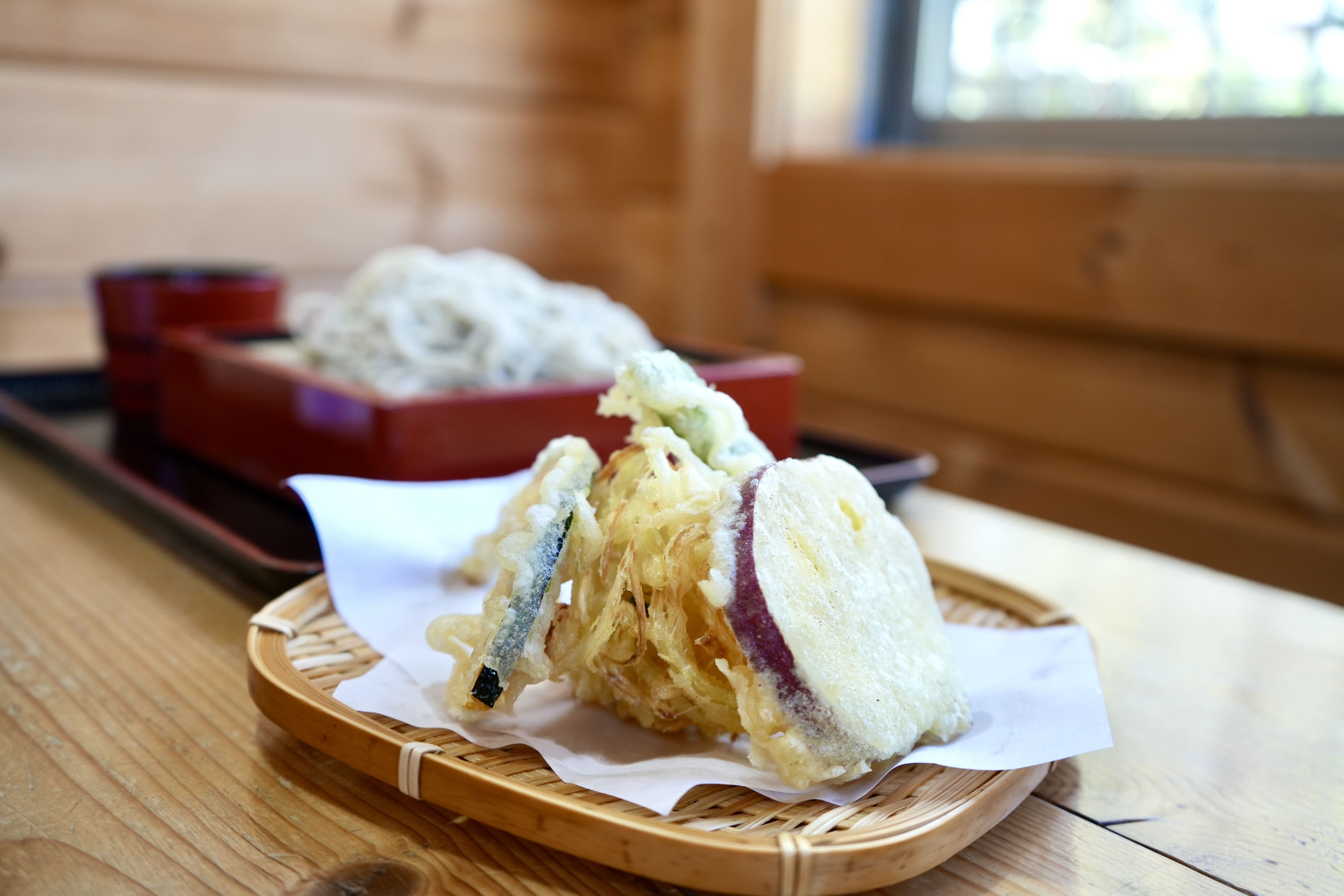 打ちたてそばと米油で揚げた地物天ぷらを堪能
