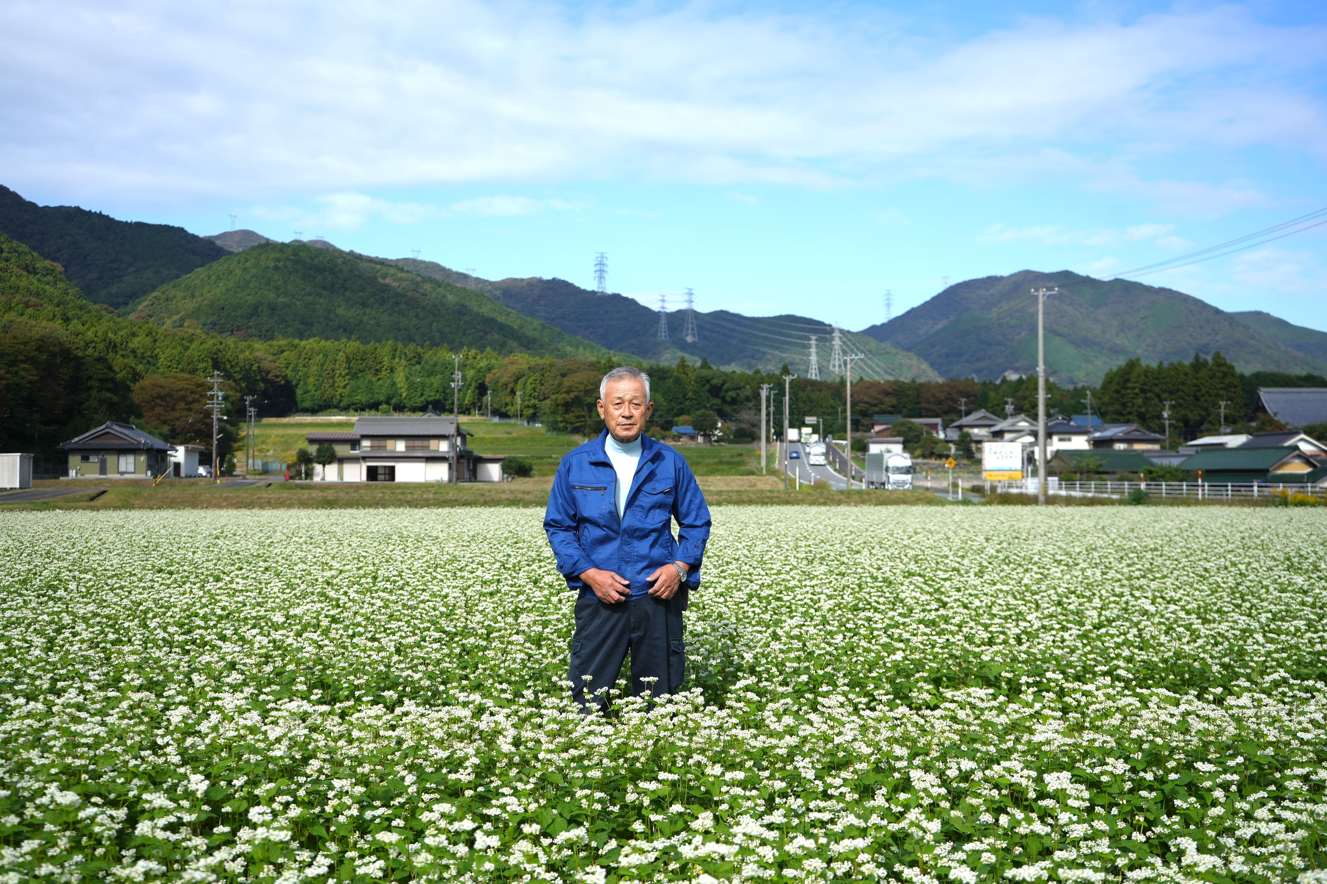 三重の最北端、里山の原風景が美しく広がるまち「いなべ市」。鈴鹿山脈の麓にあり、秋になると冷たい風が吹き込み昼夜の寒暖差が出ます。この環境がそば作りにふさわしく、次世代までこの美しい風景を残していこうという想いから2002年よりそば栽培が始まりました。