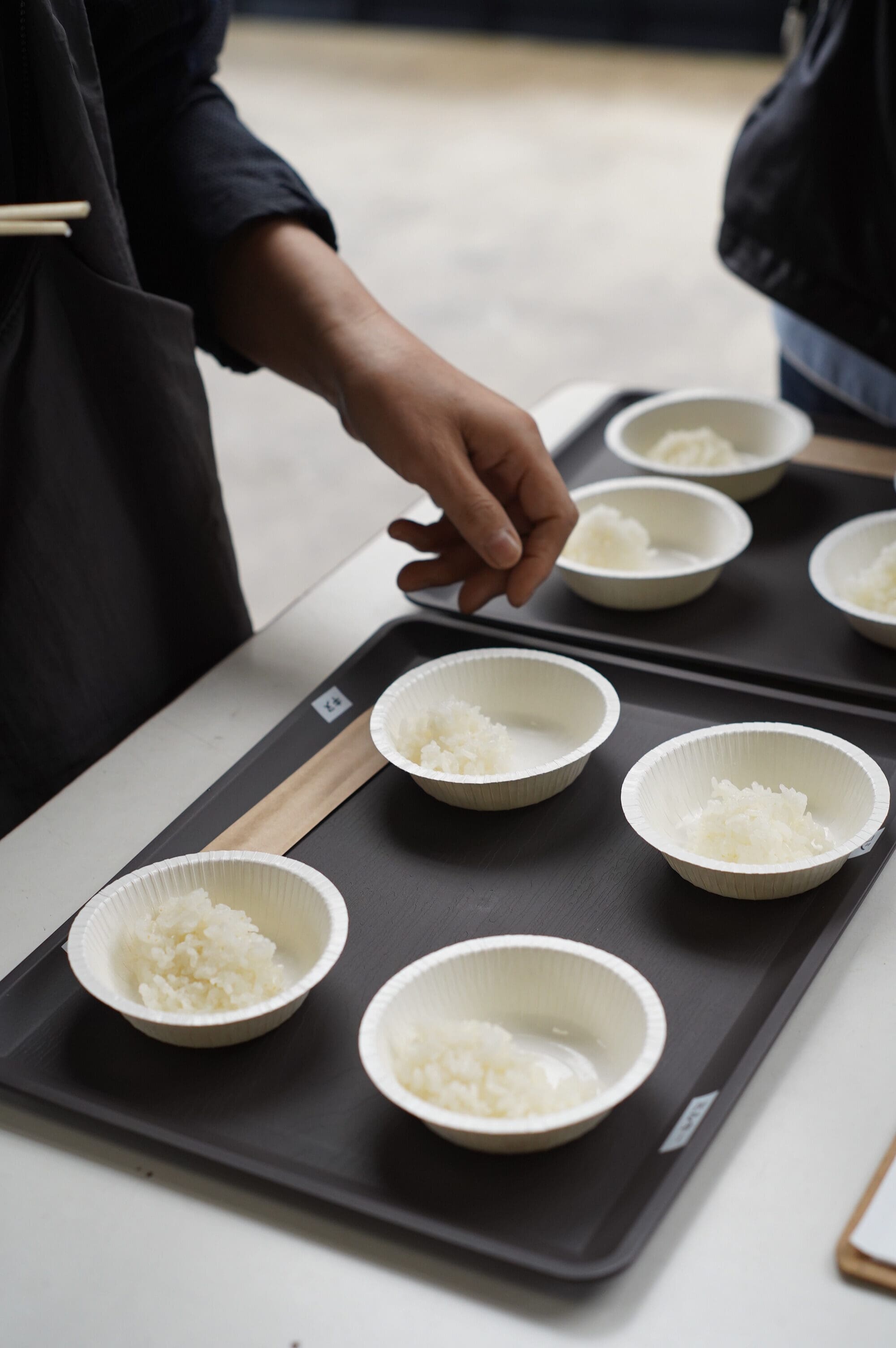 参加者のみなさまは真剣な表情で一口ずつ食べては「もちもちだね」「つやつやしていて、甘みがあるね」「こっちはさっぱりしてる!」などと話をしながら楽しんでいました。