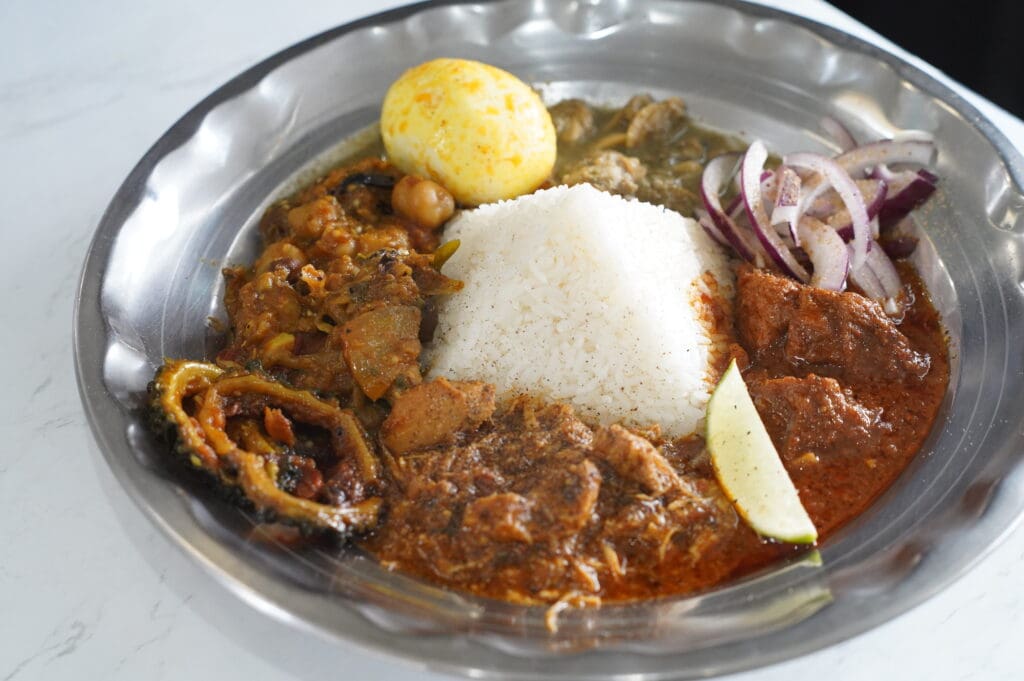 チキンがほろほろと溶ける。豚肉がぎゅっと噛みごたえがあり、肉の甘みが口いっぱいに広がる。こちらの食材はとろけるし、こちらの豆ははじける。歯ごたえのあるスパイスを発見する。どこかスッとした香りを感じたりピリリと辛味が駆け抜ける。