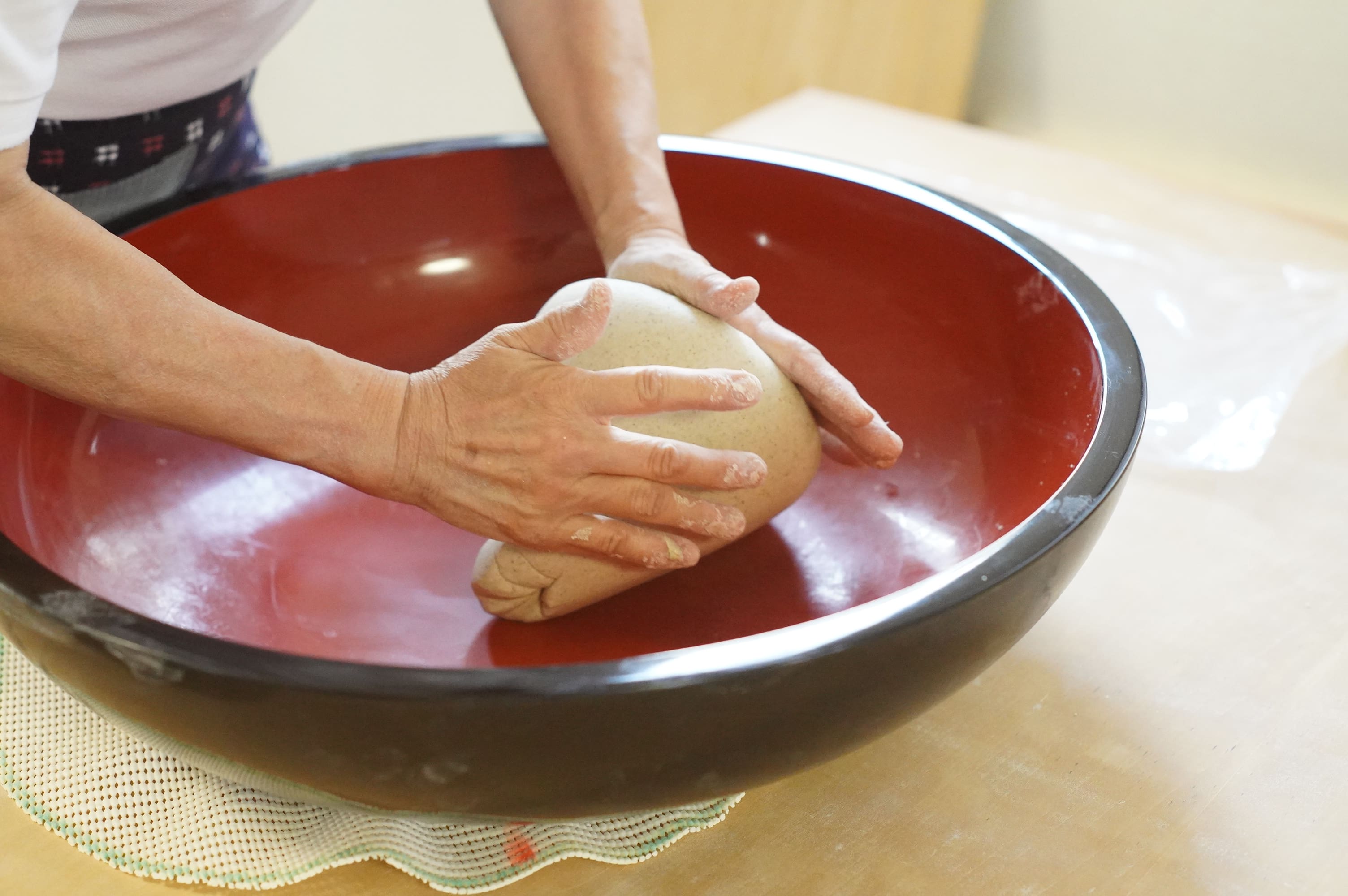 「一鉢二延し三包丁」「包丁三日、延し三月、木鉢三年」などといわれるように、そばをまとめる最初の技術の習得には、長い年月がかかるとされる重要な作業です。