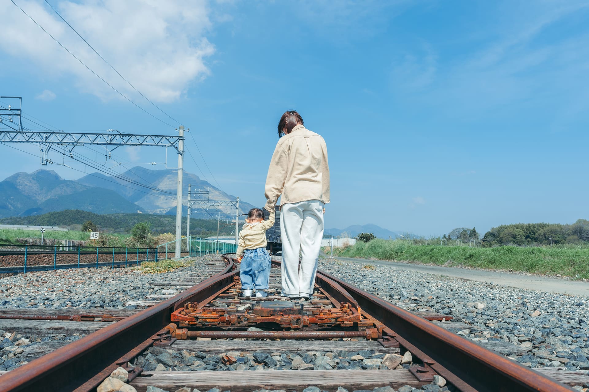線路跡の中に立ち入れるスポットは珍しく、ここではぜひ、風景の中に人物を入れて撮ってほしい。
