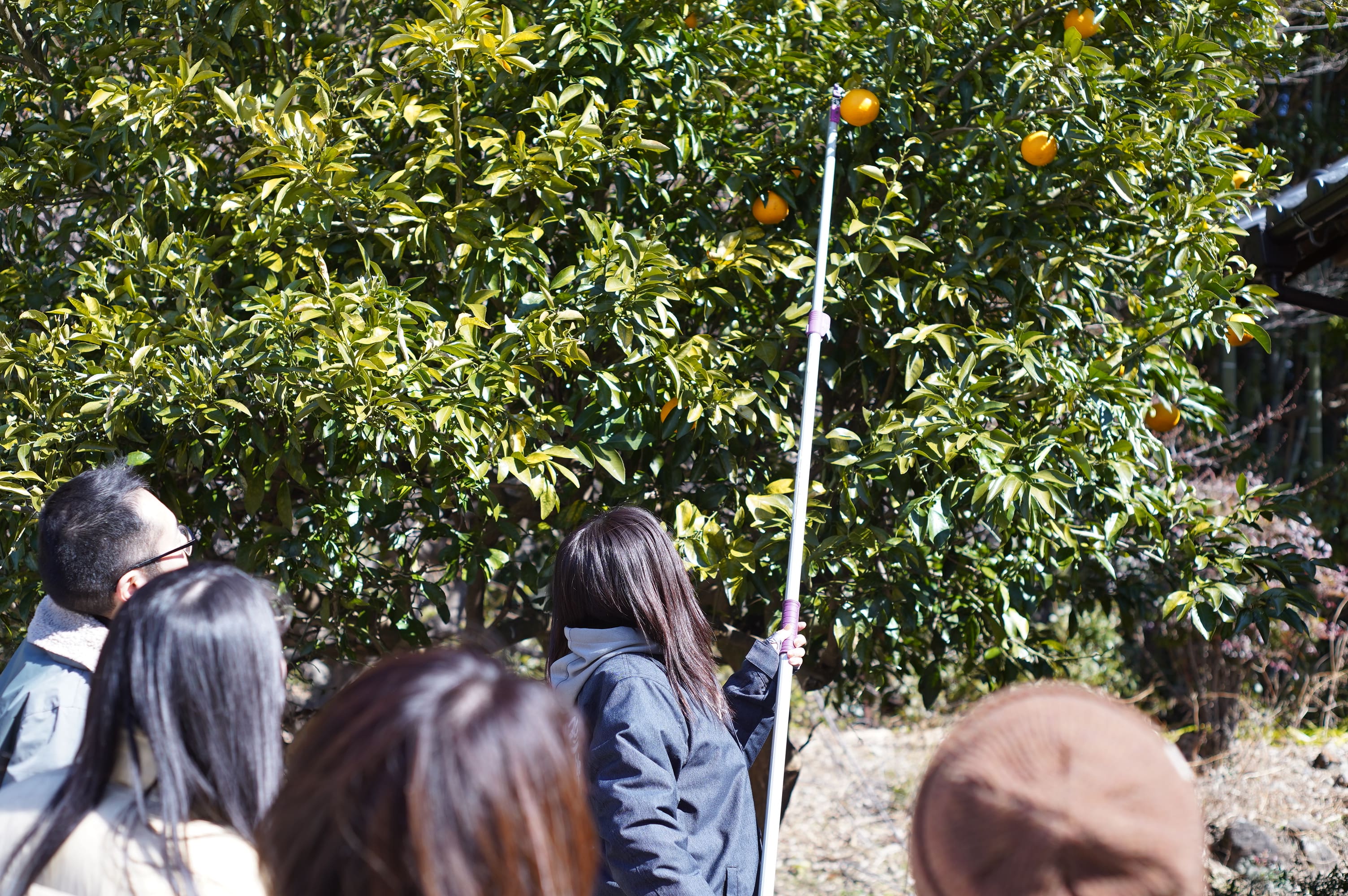 フレイトレシピでは地域で使われなくなった果樹を活用しており、今回は工房の近くにある甘夏の木で収穫の体験をしていただきます。
